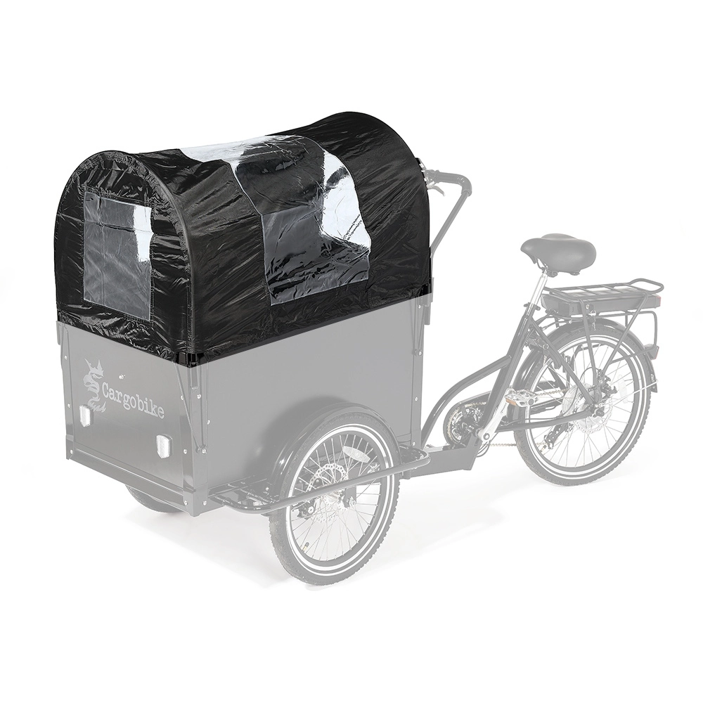 Vandafvisende præriekaleche i teltdug med original YKK-lynlås og sideindgang. Passer til blandt andet Cargobike of Sweden og Wildenburg Classic-serie Med denne kaleche kan der snildt sidde fire børn i kassen på din el-ladcykel i al slags vejr, og samtidig