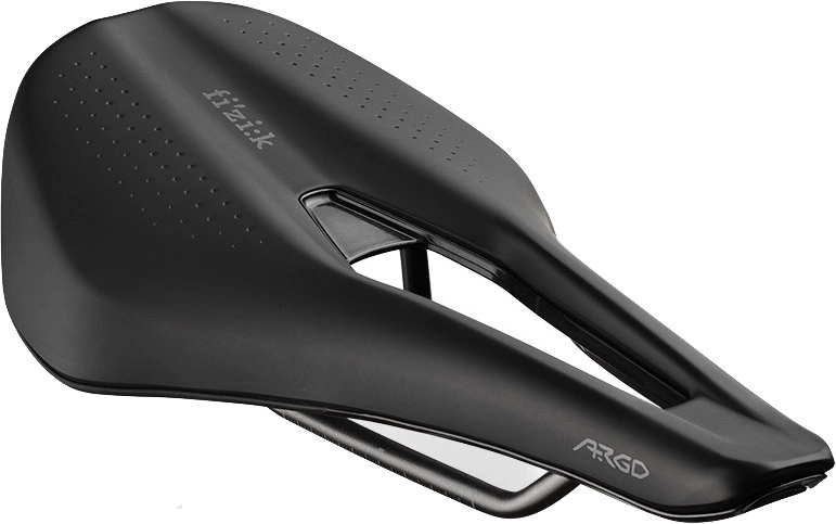 En komfort / endurance cykelsadel med en carbon forstærket nylonskal og Kium-skinne og en progressiv dæmpning i sadlen. Hvor en traditionel sadelform ofte får ryttere til at skifte position, sætter Argo rytteren i en mere plan position, hvilket giver stø