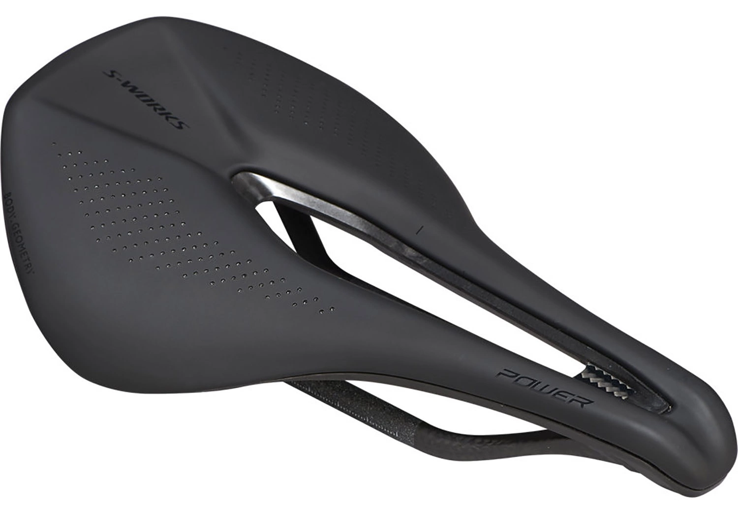 The extremely lightweight S-Works Power saddle has a stiff, FACT carbon shell and rails, and is a high-performance saddle that’s designed to help you perform at your best. Its Body Geometry design, with our lightest level of padding, caters to both m